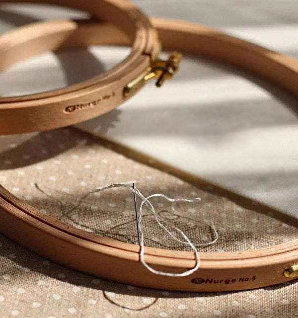 Nurge embroidery hoops are of superior quality and made of hard beech wood. They are finely sanded and hand polished to a super smooth natural wood finish.