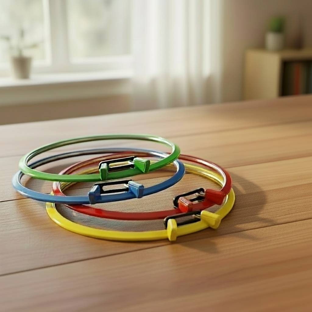 Los aros están disponibles en 5 colores y 3 tamaños diferentes, para que puedas elegir los que mejor se ajusten a tus proyectos.