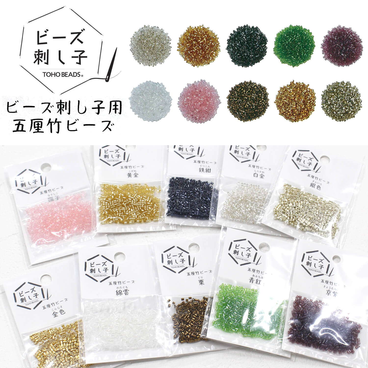 Las cuentas "5-rin" de Toho Beads están diseñadas específicamente para bordado sashiko con cuentas, una técnica contemporánea que combina los patrones tradicionales japoneses con el brillo delicado de las cuentas de vidrio.