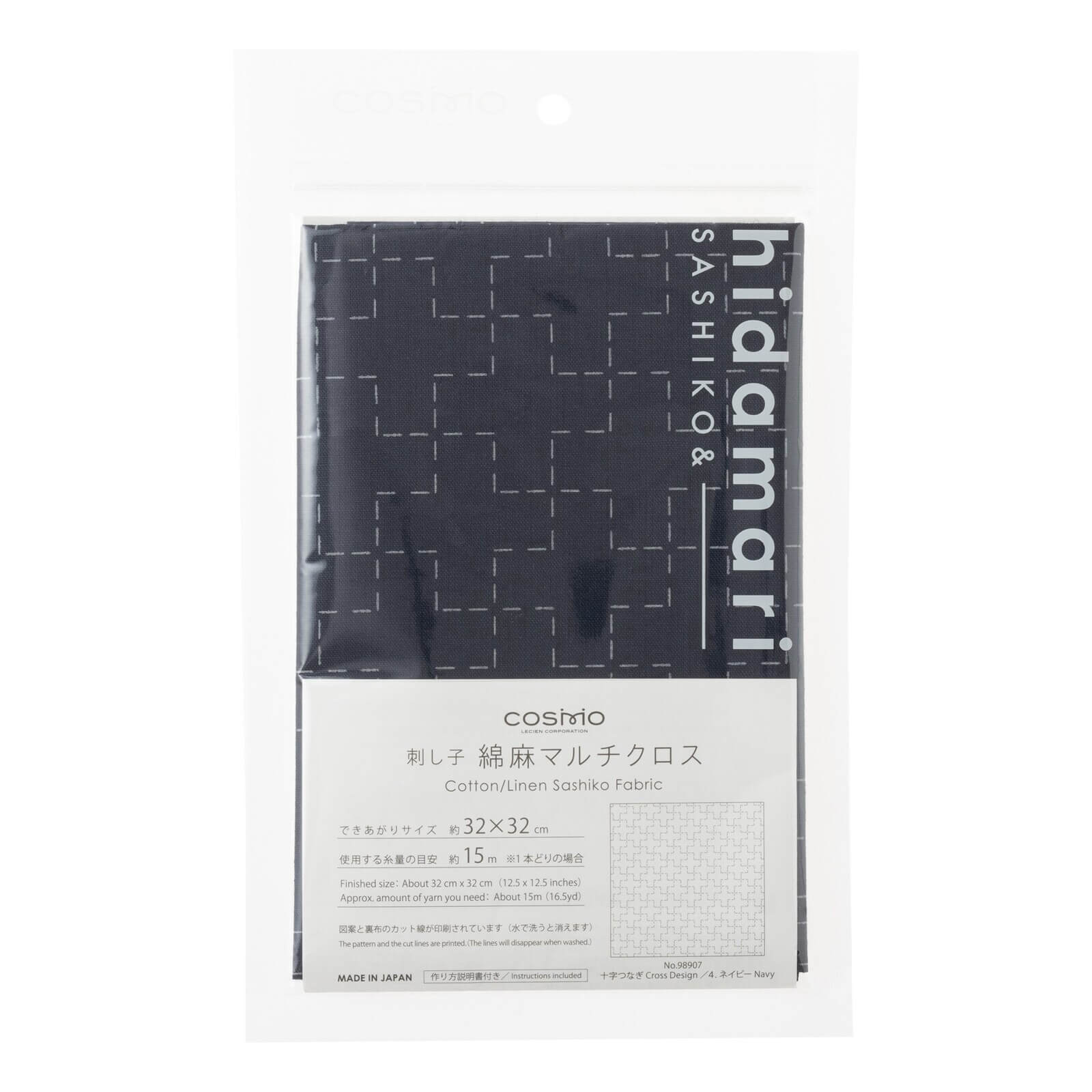 Tela de colores para Sashiko impresa con un patrón tradicional japonés, elaborada en Japón por la marca Hidamari, la gama de productos de Sashiko de Lecien.