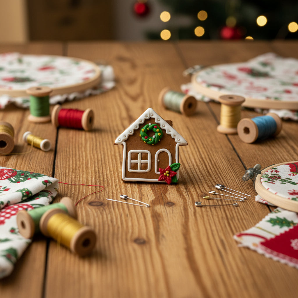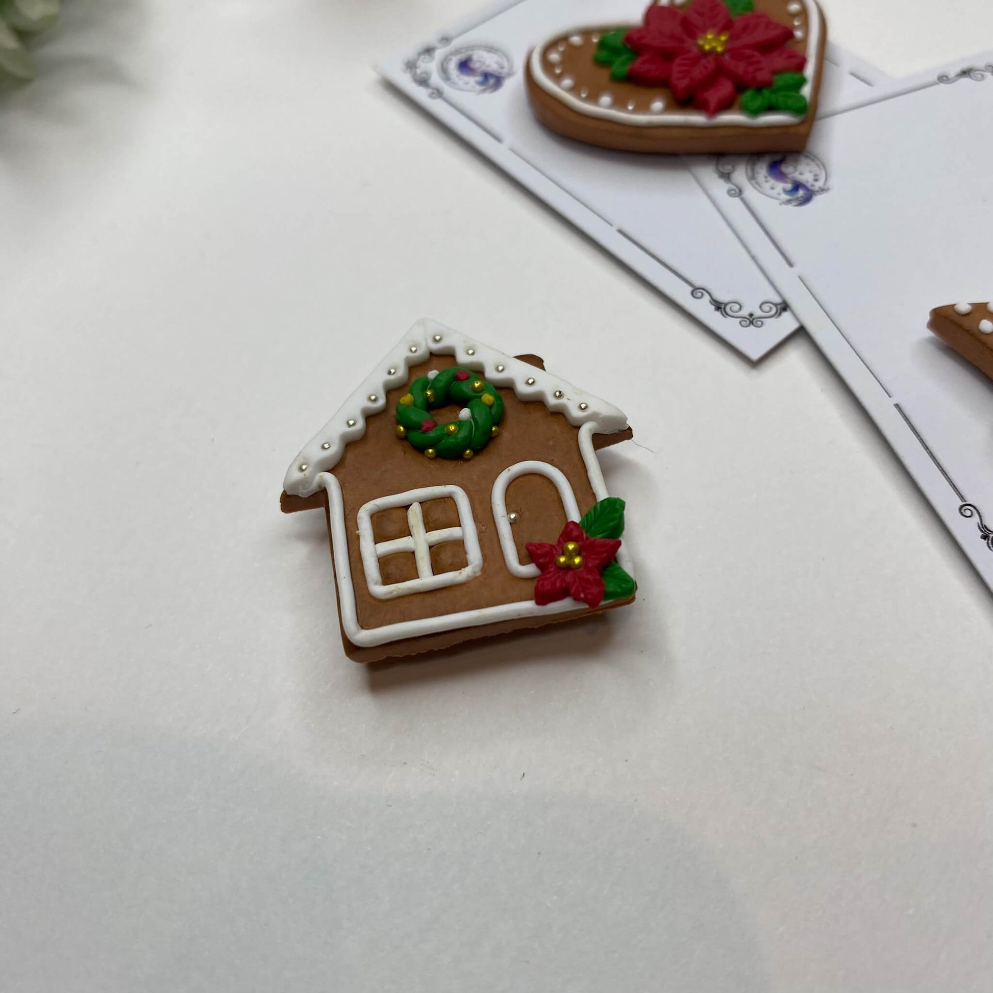 Este imán sujetaagujas de casa de jengibre con flor de Pascua es un accesorio navideño ideal para las amantes del bordado. Hecho a mano en Ucrania en arcilla polimérica por Natalia, artista de Suzir’ya Edynoroga, combina funcionalidad y encanto en una sola pieza.