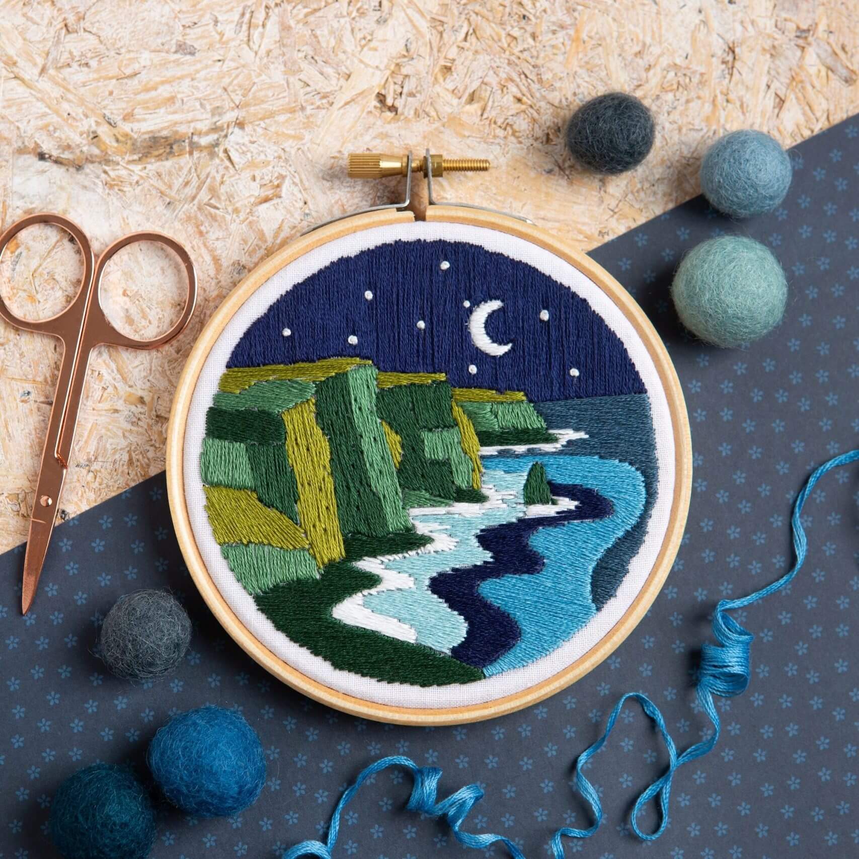 ¿Te inspiran los paisajes escarpados y la fuerza del mar? Con el kit de bordado pequeño “Celtic Cliffs” de Hawthorn Handmade podrás bordar un paisaje costero lleno de carácter y disfrutar de un proyecto creativo y relajante, ideal tanto para principiantes como para personas con experiencia en bordado.