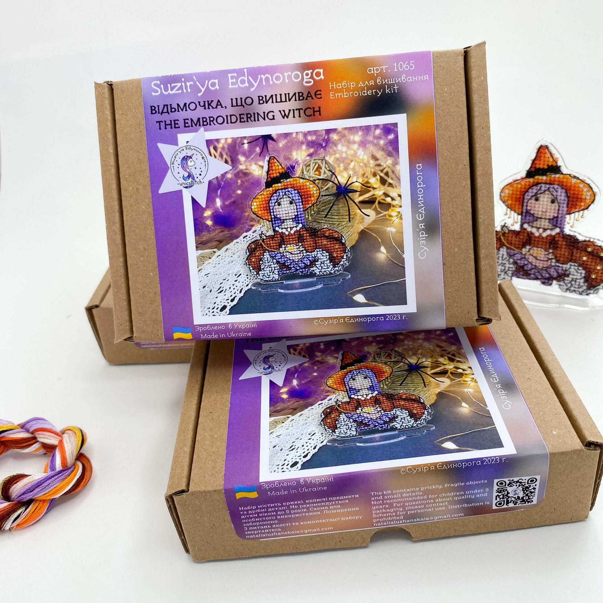 El kit de punto de cruz "Bruja Bordadora" de la marca ucraniana Suzir’ya Edynoroga es una bruja artesana que borda su propio diseño, un kit ideal para quienes aman la costura, la magia y los proyectos tiernos.