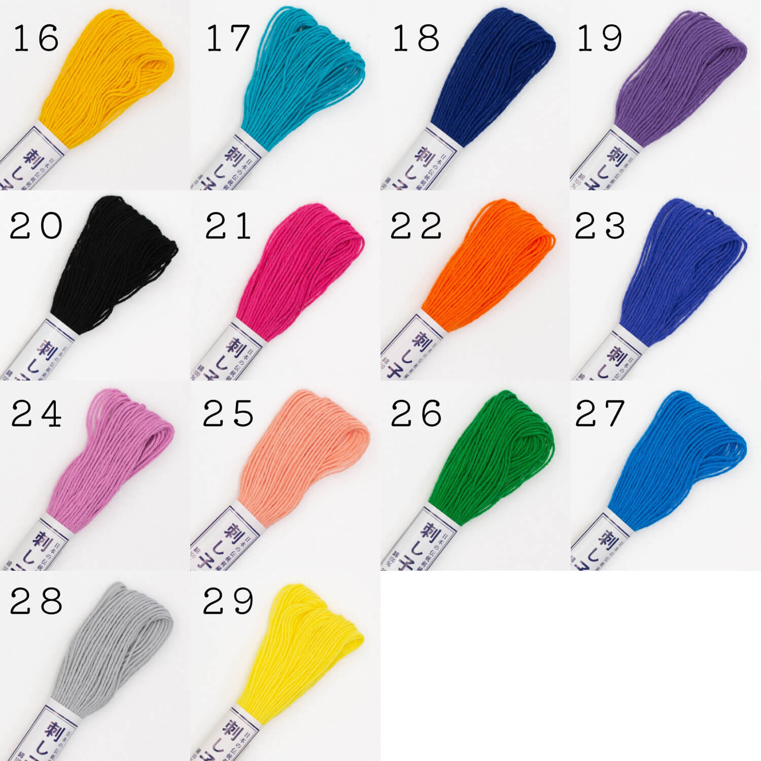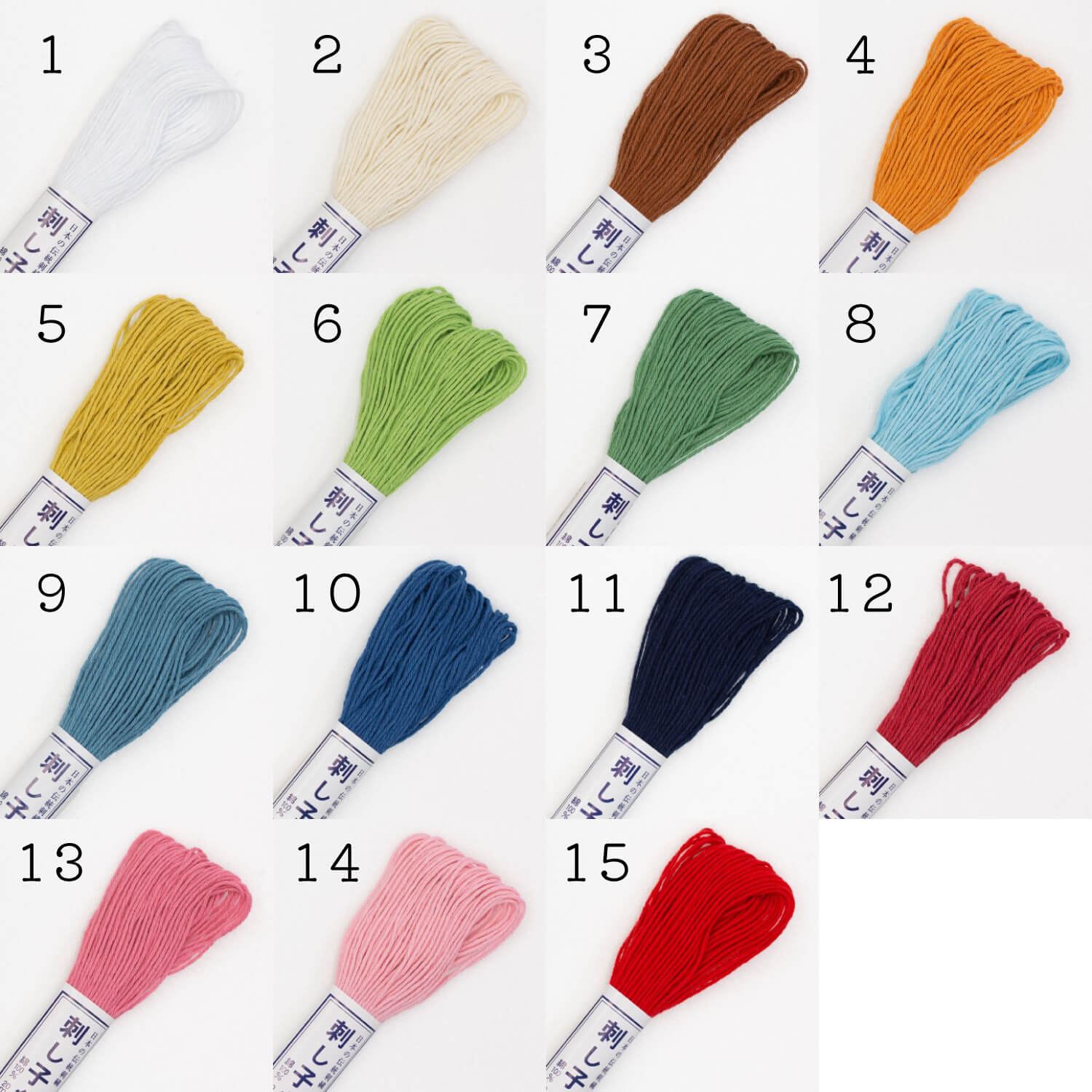 La amplia gama de colores disponibles permite trabajar tanto diseños clásicos como combinaciones modernas, adaptándose a todo tipo de proyectos de sashiko, remiendo visible (boro), bordado decorativo o textiles para el hogar.