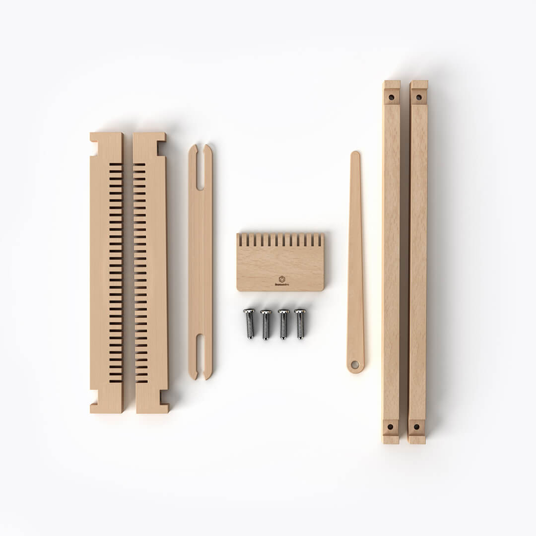 Loom S es un telar vertical artesanal, fabricado a mano en España con madera de haya certificada FSC por Ikosaedro, una pequeña empresa local. Desmontable, compacto y pensado para acompañarte en proyectos de tapiz decorativo, combina lo tradicional con un diseño contemporáneo y funcional.